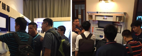 9月14日正式開展, XY銀幕一開展就客商如潮, 黑晶抗光幕表現(xiàn)驚艷全場,小編帶大家到現(xiàn)場感覺熱情氣氛: