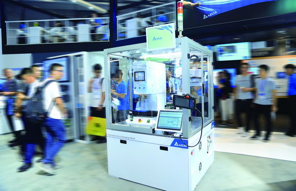 在2018工博會(huì)上,臺(tái)達(dá)展臺(tái)以不同功能區(qū)域進(jìn)行展示,展品布置彼此連接、井然有序,為來賓呈現(xiàn)臺(tái)達(dá)智能工廠整體解決方案的高價(jià)值。