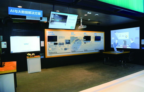 在呈現(xiàn)智能化生產(chǎn)的展示區(qū)域,集成了智能化生產(chǎn)車間的核心要素,包括機(jī)器人工作站的模擬加工、生產(chǎn)線的數(shù)據(jù)采集與監(jiān)控、廠務(wù)能源管理、新一代高度集成的微模塊數(shù)據(jù)中心解決方案及電源適配器等;結(jié)合電子伺服壓床和鎖螺絲機(jī)器人,打造全自動(dòng)、智能的工件鎖附和沖壓設(shè)備;以及根據(jù)各種應(yīng)用場(chǎng)合需求研制的模組與軟硬整合方案。