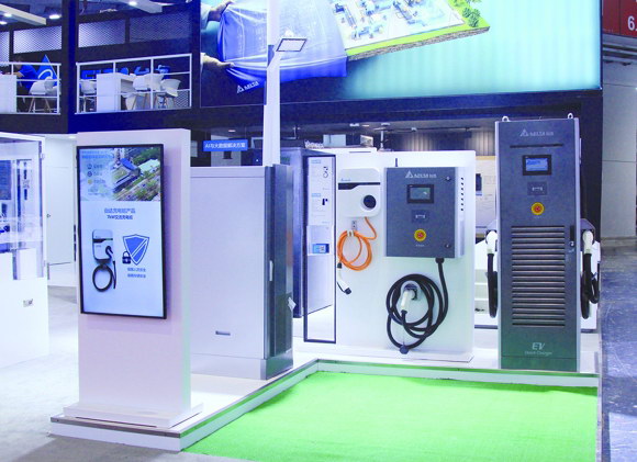 在呈現(xiàn)能源管理應(yīng)用的展示區(qū)域,展示有可應(yīng)用于新能源汽車的交、直流電動(dòng)車充電裝置,支持充電站管理系統(tǒng)之整合;可直接在戶外安裝使用的光伏逆變器;以滿足互聯(lián)、監(jiān)控、管理合一的智能路燈解決方案,以及具備強(qiáng)大遠(yuǎn)程管理功能的DS信息發(fā)布系統(tǒng)等。