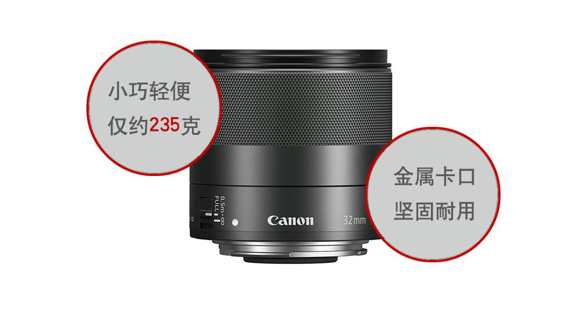 EF-M 32mm f/1.4 STM秉承了EF-M系列“小型、輕量、高品質”的設計理念。雖然是一款大光圈、高畫質鏡頭,但依然保留了符合EF-M系列的小巧特性,適合作為日常掛機鏡頭使用。該鏡頭采用了高規格的金屬卡口,進一步提升使用的可靠性,其外徑約60.9mm,長度約56.5mm,重量只有約235g。