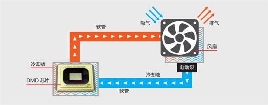 理光PJ LU9000/理光PJ LU10200激光投影機擁有一套完善的液體冷卻技術。此技術采用熱交換半導體電路直接對DMD芯片進行循環冷卻,提高冷卻效率加強散熱效果的同時,實現保障DMD芯片高效穩定運轉,確保投影機的使用亮度和圖像質量,延長投影機使用壽命。