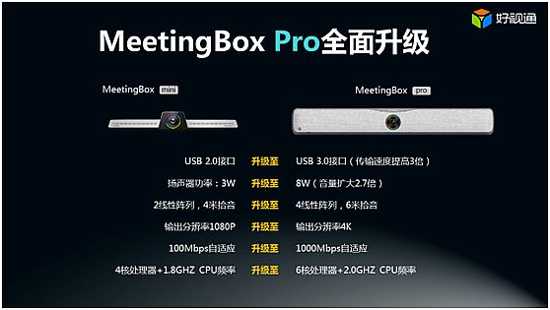 自16年底齊心好視通發(fā)布了首款一體化云會(huì)議智能硬件MeetingBox Mini,讓召開(kāi)視頻會(huì)議如同打電話般簡(jiǎn)單,一經(jīng)推出,立即引起熱議與追捧,而齊心好視通并未停下探索更多新技術(shù)的腳步,時(shí)隔兩年后,帶著其全新升級(jí)產(chǎn)品——MeetingBox Pro閃耀面世。和前一代產(chǎn)品相比,MeetingBox Pro延續(xù)了其高度智能一體化的設(shè)計(jì),但在硬件上做了不小的升級(jí)改變,將六大硬件進(jìn)行了全面升級(jí),力求打造出更好的視頻會(huì)議體驗(yàn)。