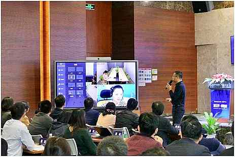 在現(xiàn)場(chǎng)演示環(huán)節(jié),MeetingBox Pro清晰的畫(huà)面、流暢的音效、大屏幕實(shí)時(shí)切換發(fā)言人、共享文件、語(yǔ)音激勵(lì)、無(wú)線投屏、聲源自動(dòng)定位跟蹤、AI人臉識(shí)別、智能語(yǔ)音翻譯等功能讓現(xiàn)場(chǎng)每一個(gè)觀眾無(wú)不感到驚嘆,顛覆了他們對(duì)視頻會(huì)議的傳統(tǒng)認(rèn)知。