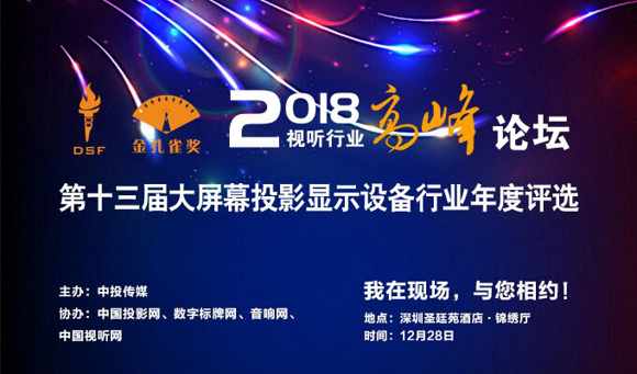 2018年12月28日,由中國投影網(wǎng)、中國視聽網(wǎng)、數(shù)字標牌網(wǎng)、音響網(wǎng)等八大行業(yè)媒體聯(lián)合共同舉辦2018視聽行業(yè)高峰論壇暨第十三屆中國大屏幕投影顯示設備行業(yè)年度評選頒獎典禮”在深圳圣廷苑錦繡廳盛大開幕,此次盛會以“創(chuàng)新融合,共創(chuàng)視聽新紀元”為主題,匯聚了視聽行業(yè)眾多學者、專家以及企業(yè)高層參會,活動場面盛大,“大咖”云集!