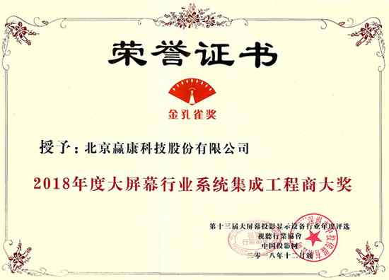 12月28日,2018年視聽行業高峰論壇及優秀品牌評選活動在深圳盛大開幕,贏康在該活動中分別獲得了2018年度大屏幕行業系統集成工程商大獎和2018年度優秀案例大獎。