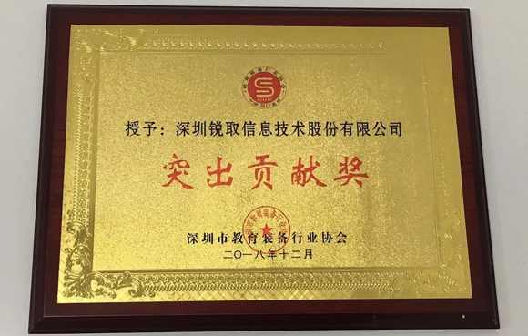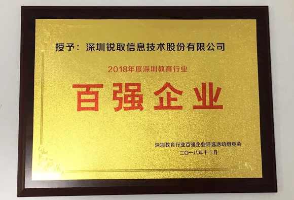2018年12月,深圳市教育裝備行業(yè)協(xié)會(huì)一屆二次會(huì)員代表大會(huì)暨一屆三次理事會(huì)在深圳市五洲賓館隆重舉行,銳取榮獲“深圳教育百?gòu)?qiáng)企業(yè)”榮譽(yù)稱號(hào),協(xié)會(huì)及眾會(huì)員單位對(duì)銳取在2018年度為教育信息化所做出的努力表示了肯定。