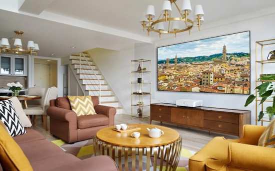 針對終端用戶白天或者開燈看電視的需求,相較于普通萬元激光電視不足2000流明的配置,在亮度方面,i950L擁有3200流明亮度,i955L則擁有高達3300流明亮度,均達到100000:1對比度,并配備專業黑柵抗光屏幕,無論白天黑夜,無需特意制造黑暗投影環境,同時,由于采用了性能穩定的激光光源技術,即開即關,機器使用壽命長達20000小時以上。