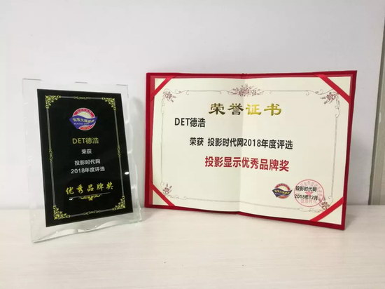 此次獲得的2個獎項,是繼上個月末DET獲得中國大屏幕投影行業年度評選的“投影機品牌大獎”之后又獲得的行業獎項,肯定了DET德浩在視聽行業的努力和表現力。