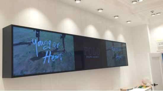 此次廣東佛山的POLO門店打破原有的平面廣告束縛,將三塊LG 55VH7B無邊框拼接顯示屏拼接,組合而成一個更動態的展示空間。預計今年,天津、沈陽及成都等6個城市門店也即將安裝LG 55VH7B拼接顯示器,帶給消費者一個全新的體驗式服務。