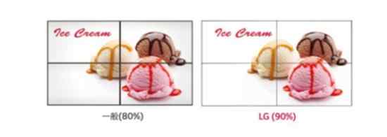 很多實體店不愿嘗試顯示屏,最大的原因就是顯示屏明顯的邊框拼縫,會給原來的畫面美感打折。LG 55VH7B無邊框拼接顯示屏采用無金屬邊框設計,突破了物理束縛。液晶面板不發光部分的寬度僅為0.9mm,拼接后縫隙小于2mm,3塊顯示屏近乎無邊的拼接效果,這對于液晶拼接視覺體驗是極大的提升。