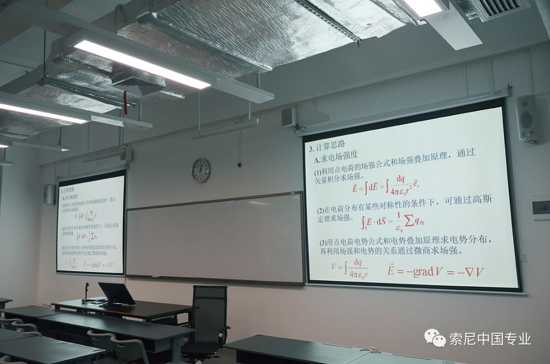 階梯教室面積較大,坐在后排可看清VPL-P500XZ投影屏幕