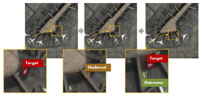 (a)目標受到遮擋物及背景干擾物影響下的跟蹤效果