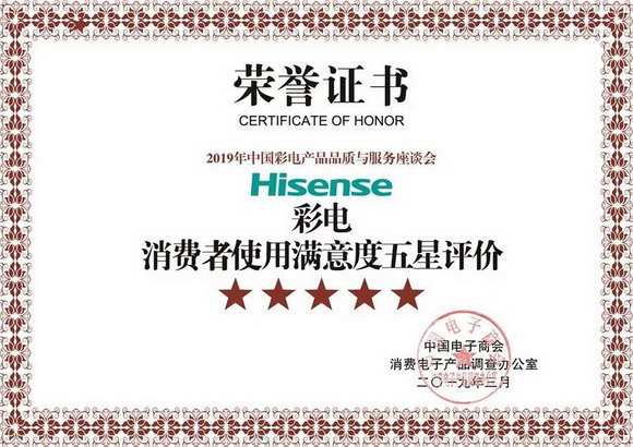 50年來,海信對質量的堅守,從歷年獲得的獎項可以窺見一斑。 在面對當下競爭日益激烈的電視市場中,海信電視自2008-2019年連續11年榮獲“消費者使用滿意度五星評價”獎項,憑借出色的硬實力,海信多次受到消費者和國際認可。