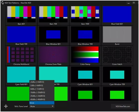 通過Scan Convert可將任何源轉換為NDI,以獨立的通道信號共享在局域網中。在眾多的通道中,提供通信調試器(NDI Test Patterns),來高效的實現信道的調試,其中包括信號、音頻。同時還提供信道監視器(Studio Monitor),讓控制中心選擇所有信道進行監看。