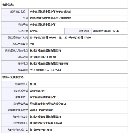 采購項目名稱: 永寧縣望遠鎮豐盈小學電子白板采購