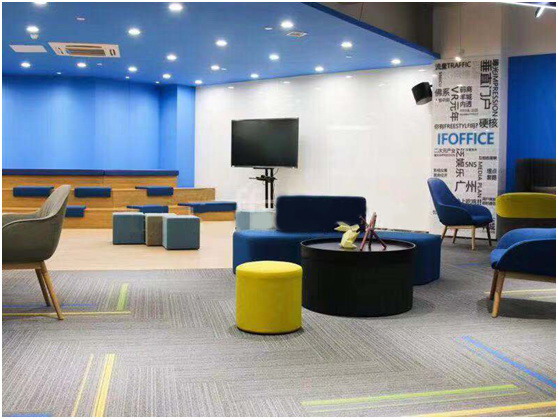 中盈地產的智慧辦公空間注重多元化與個性化,建有現代化開放式討論區,在這里,newline會議平板將科技感與時尚感融為一體,讓辦公區域空間具備靈活可塑的功能性,實現了高效率溝通協作。