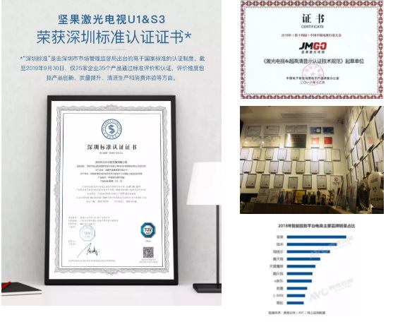 前段時間堅果旗下激光電視產品更是獲得了“深圳標準認證證書”,高于普通國家標準。