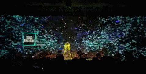 年會現場,鴻合工程顯示團隊通過一臺NEC PH3501QL+工程投影機將動態視頻投射到紗幕上,優秀投影畫質與紗幕既反光又透光的特性完美融合,呈現沉浸式的絢麗畫面,配合藝術家精湛的舞姿,可謂藝術與高科技的完美結合,為觀眾打造了身臨其境的沉浸式體驗。