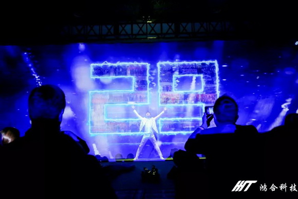 “越過里程碑,再創新鴻合”,11月15日,鴻合科技笑語歡歌,處處洋溢著一派歡快、喜慶、熱鬧、祥和氛圍。鴻合科技在京及部分海外員工歡聚一堂,共同慶祝鴻合科技29周年生日。年會上,鴻合工程顯示團隊用NEC工程投影機打造的一場紗幕全息投影秀,用沉浸式的紗幕全息投影再現公司廿九載輝煌。