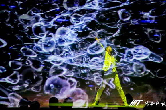 此次,鴻合工程顯示團隊打造的紗幕全息投影不僅帶來了優秀的視覺體驗,同時也拓展了舞臺的空間層次感,增強了演出中演員與影像之間的互動,為演出增添了更多魅力。