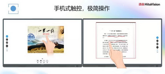 鴻合雙屏教學(xué)解決方案擁有手機(jī)式觸控,極簡(jiǎn)操作,課堂上,教師利用簡(jiǎn)單的手勢(shì)操作即可開(kāi)展日常的教學(xué)活動(dòng)。