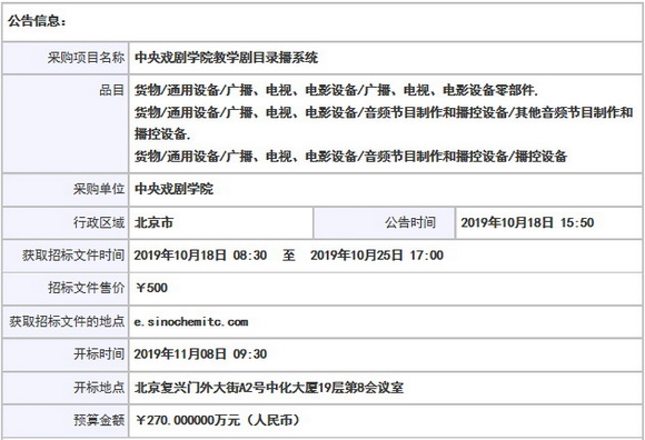中央戲劇學(xué)院教學(xué)劇目錄播系統(tǒng)公開招標(biāo)公告