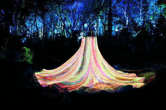 “花仙子”裙擺雕塑高3米,裙面尺寸約直徑6米,且凹凸不平,褶皺迭起。經(jīng)過精心的投影設計,投影畫面完美覆蓋整個裙身。曼妙靈動,裙邊飛揚的造型,配合華美俏麗的投影畫面,瞬間將雕塑變成一條“真正的”錦衣霓裳,滿足了游客對于“花仙子”的美好想象。