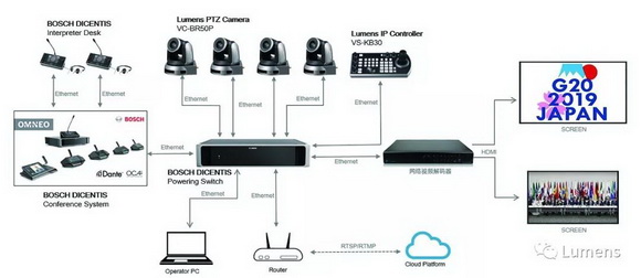2019年6月,G20峰會首次在日本大阪舉行,各國首腦齊聚于此。本次大會共有大小二十多個(gè)論壇會議,對音視頻服務(wù)商設(shè)備的穩(wěn)定性、IP化、即時(shí)同步性、品牌兼容性等方面提出了極高要求。Lumens高清會議攝像機(jī)VC-BR50P及網(wǎng)絡(luò)鍵盤控制器VC-KB30憑借優(yōu)質(zhì)品質(zhì)、性能、超高穩(wěn)定性等特點(diǎn),搭配BOSCH會議系統(tǒng),共同為G20峰會保駕護(hù)航。