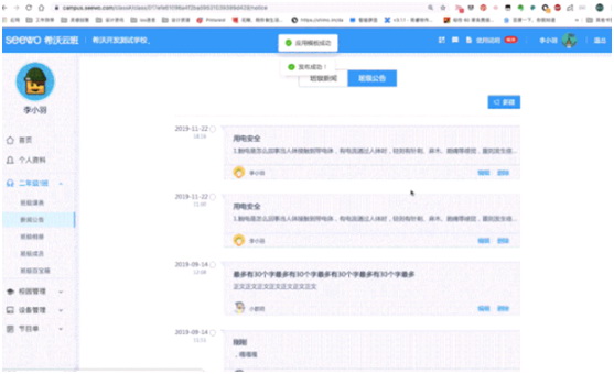 希沃云班牌不僅可以刷臉簽到、走班排課它還是家長(zhǎng)與學(xué)生的“留言機(jī)”新聞通知、光榮榜、班級(jí)影像的發(fā)布載體家校溝通與班級(jí)文化打造的陣地。