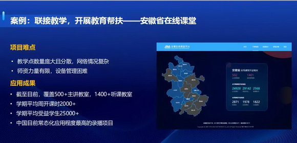 扎根教育前線十五載,奧威亞打造的安徽在線課堂案例,通過建設“智慧課堂”,解決了教學空間資源難調動的問題;通過常態化的遠距離的教學互動,真正實現教學資源的實時共享,奧威亞安徽在線課堂的應用為全聯接教學中的“聯接教學”模塊,樹立了里程碑式的實踐意義。