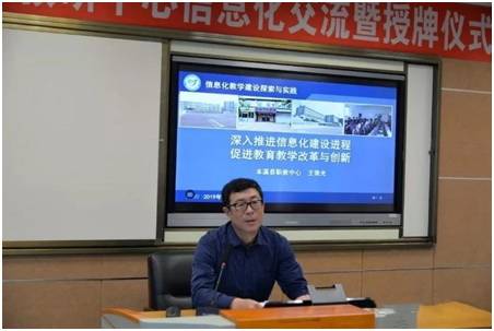 職教中心副主任、副校長李主任在儀式上,以“搭建校企合作教研交流平臺,提升信息技術教學融合能力”為題發表了總結講話。