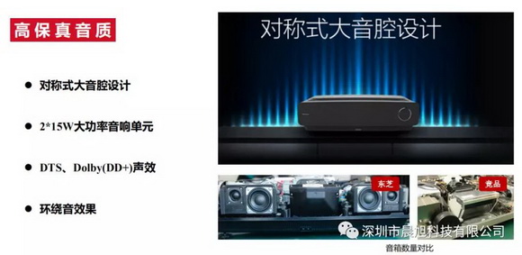 東芝智能激光超短焦投影機(jī)憑借自有激光技術(shù)優(yōu)勢(shì),搭載強(qiáng)勁智能核芯,具備物聯(lián)屬性,兼具傳統(tǒng)激光和LED優(yōu)點(diǎn)的時(shí),具備精工藝、優(yōu)畫質(zhì)、 高保真 、智能性 、 長(zhǎng)壽命等特點(diǎn), 至臻音享15W*2兩組大功率音響滿足各種場(chǎng)景下的需求。