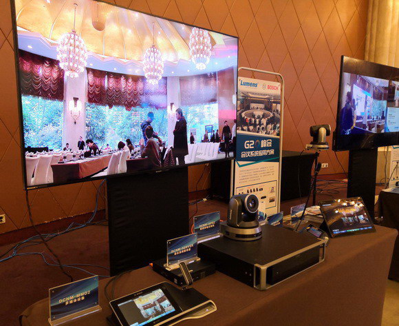 發(fā)布會現(xiàn)場展示了4K產(chǎn)品和Huddle Room團(tuán)隊(duì)協(xié)作新場景應(yīng)用方案、會議系統(tǒng)應(yīng)用方案、多畫面全網(wǎng)絡(luò)錄/直播應(yīng)用方案等多個(gè)應(yīng)用場景,供用戶參觀和體驗(yàn)。全新一代多媒體網(wǎng)絡(luò)錄播一體機(jī)LC200,可實(shí)現(xiàn)多信號源錄像存儲、網(wǎng)絡(luò)直播、局域網(wǎng)廣播等功能,現(xiàn)場以LC200為核心設(shè)備搭建的多畫面全網(wǎng)絡(luò)錄直播應(yīng)用方案,可廣泛應(yīng)用于政府部門、企事業(yè)單位、高校等行業(yè)的會議室、多功能廳等環(huán)境;Huddle Room團(tuán)隊(duì)協(xié)作新場景應(yīng)用方案則以Lumens超廣角USB攝像機(jī)為依托,結(jié)合高清實(shí)物展臺、森海塞爾全向麥等搭建而成。該方案具備全視野、布置方便、成本可控、實(shí)時(shí)共享等優(yōu)勢。通過這種現(xiàn)場產(chǎn)品線零距離的觀賞體驗(yàn),嘉賓們切身感受到Lumens產(chǎn)品帶來的震撼表現(xiàn),并對Lumens的未來發(fā)展表示了極大的肯定