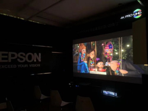 在展會上,愛普生展出了不同價位段的支持4K PRO-UHD技術的投影產品,面向各個消費層級的年輕消費群體布局。愛普生CH-TW7000 4K PRO-UHD 客廳娛樂家庭影院投影機是針對于入門級的用戶,其擁有3840x2160 4K超高清分辨率,3000流明高亮度及40,000:1對比度,最大可投500寸。從現場的體驗來看,雖然是入門級的產品,但在投影畫面的亮度和清晰度上遠比同價位產品高出不少,3000流明的亮度保證了白天正常觀影的舒適度,經過HDR10+HLG的加持,讓畫面黑白分明,色彩純正,帶來沉浸式的高清大畫面。