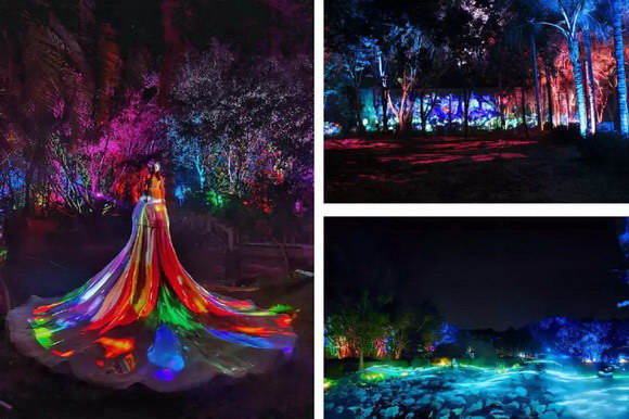 22 臺 科視 GS 系列激光投影機將東南花都變身燈火通明的夜間仙境。這座占地 650 公頃、布滿奇花異草的大型公園里,多處景點采用了美輪美奐的投影,任人們沉醉其中。