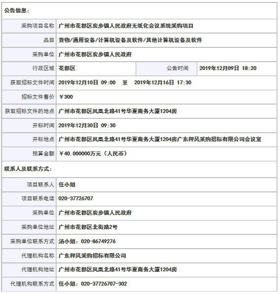 廣州市花都區炭步鎮人民政府無紙化會議系統采購項目公開招標公告