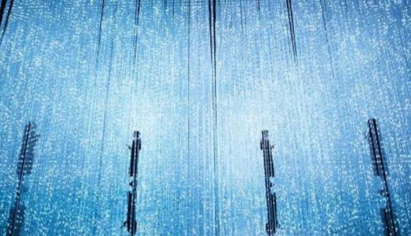 瀑布傾瀉在巖石之上,當(dāng)人們站在下降的水中,或用手觸摸墻壁時(shí),水量也會(huì)隨之改變。在這個(gè)虛擬的三維空間中,可以清晰的看出水流描繪出了瀑布和巖石的形狀。