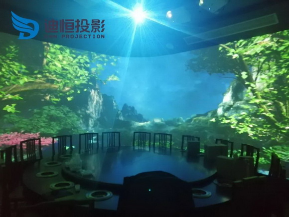項目詳情:該項目是萊西花好月圓火鍋店的項目,通過使用DW370ST與DM907所做的沉浸式與環幕投影;該項目共分為兩個部分,第一部分為使用兩臺DM907拼接而成的大屏,配合桃花源的裝修場景構造一個世外桃源的感覺。第二部分為包房,主題為花好月圓光影包間,用了8臺DW370ST構造了一個環幕場景,給人以沉浸式體驗。全新的視角不一樣的風格應用,各種特效影像在身邊綻放,帶來一種全新的奇特的體驗。