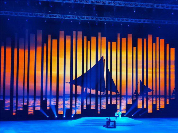 安裝點亮后,艾比森LED顯示屏呈現(xiàn)出了超乎想象的視覺效果,達到了預期的氣勢恢宏視覺震撼,大大豐富了開幕式的表現(xiàn)力。