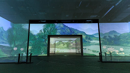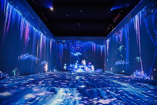 閩侯縣博物館打造了全新CAVE沉浸式空間。在這個約30平方米、三面墻體和地面均為顯示屏的空間,12臺索諾克SNP-LU6600激光工程投影機以其1920×1200的高分辨率和100000:1的超動態對比度,呈現了超高清畫質,配合環繞音響設備和裸眼3D技術,以視覺藝術直擊觀眾,讓人宛如身臨其境。