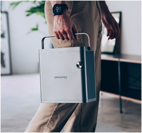 除了專業的影音享受之外,優派新一代的X10依然擁有高顏值的機身,其延續了榮獲德國IF大獎的經典設計。典雅穩重的對稱造型,金屬外觀搭配皮革,簡約設計中增添了幾分柔美,皮革與金屬相呼應呈現出了工業時尚的美感;同時采用的便攜式獨立把手設計,方便用戶攜帶,能隨時滿足用戶的影音娛樂需求。