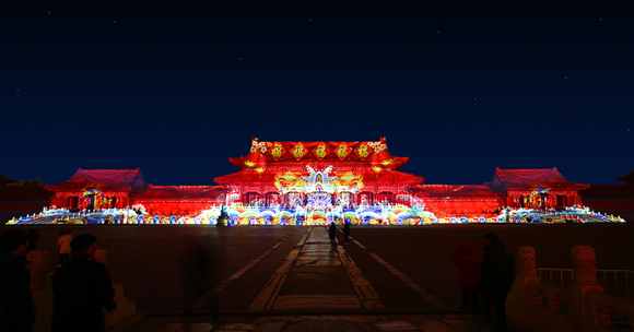 上元之夜,故宮特舉辦以“賀歲迎祥——紫禁城里過大年”為主題的新春系列大展。建院94年來首次舉辦“燈會”,故宮融匯了故宮歷史及文物中蘊藏的年味元素,結合當代藝術設計理念,運用數字投影、虛擬影像、互動捕捉等方式,為觀眾呈現了一個充滿年味的紫禁城,成了京城“最亮”的景點!