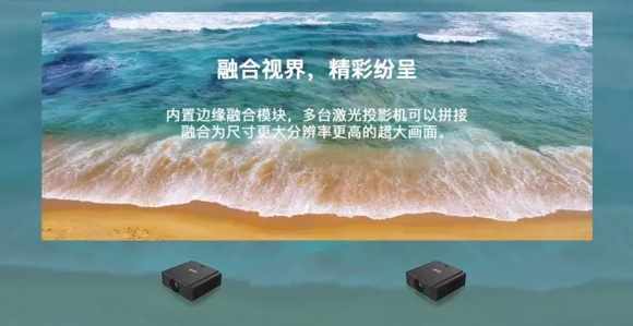 4、內置純硬件融合模塊,多臺激光顯示投影機可以拼接融合為尺寸更大、分辨率更高的超大畫面;