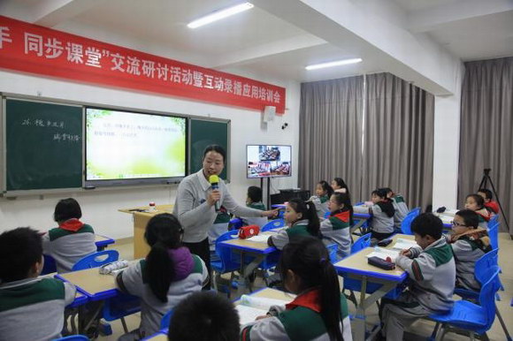 “我覺得新媒體新技術給我們的課堂帶來了巨大的改變。它不斷地向課前課后延伸,范圍也越來越大。比如我今天一個人就為四個校區的孩子上了課,感覺很新鮮。每一次向媒體技術邁進一步,對于我個人來說,都是一種極大的促進。”阮木花老師對這種新型的上課方式如此評價道。不僅僅是阮老師,很多老師都對遠程同步互動課堂贊不絕口。