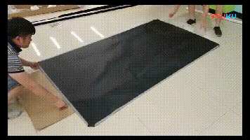 這是一個很實際的問題,即便辦公室足夠大,電梯太小運不上來也是白搭。上文提到過,激光電視分為主機與幕布兩大部分,幕布可以選用柔性卷體幕布,卷起來搬運,搬進房間后,再展開安裝。