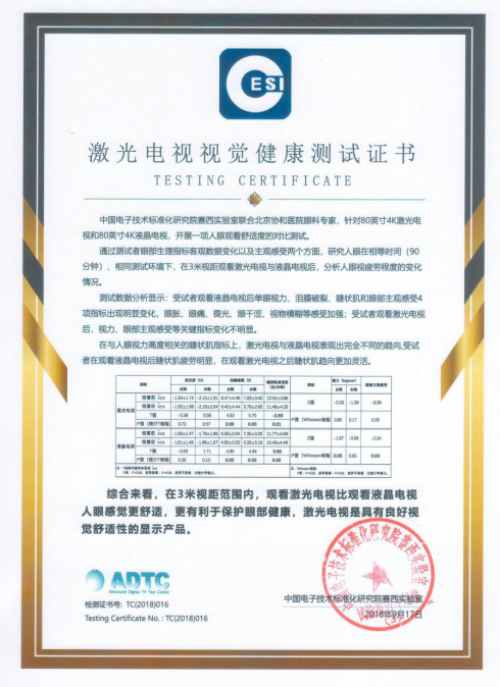 提到大電視,有小朋友的家庭當然是格外關心視力問題了。在去年的一項國家研究測試報告中,激光電視可是通過了護眼的標準呢!