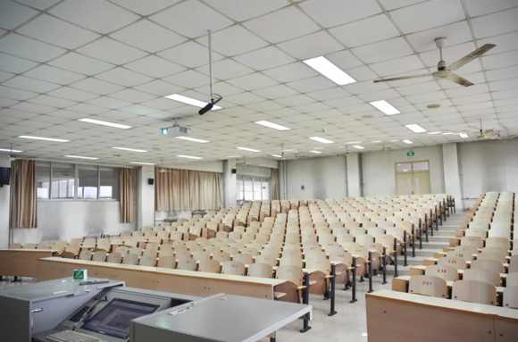 在可容納近300人的大型階梯教室中,VPL-P500WZ投影150英寸屏幕作為主畫面,為重要演講或會議提供影像呈現支持。