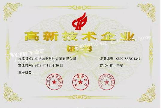 根據國家《高新技術企業認定管理辦法》相關規定,經過層層審核政府復查后,經公示后,確認卓華光電科技集團有限公司(以下簡稱“Voury卓華”)正式通過“高新技術企業”認定。