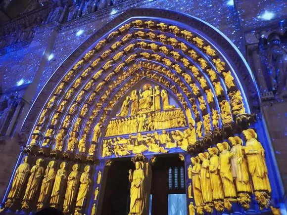 無論時代怎樣變遷,人們依然敬畏上帝,即便是無數(shù)次地毀滅與重生,也一樣向往美好的生命。燈光秀全程伴隨著管風琴的演奏和孩子們的純真虔誠的歌聲,蠟燭與光影、星光匯集在一起,為巴黎圣母院披上璀璨耀眼的外衣。